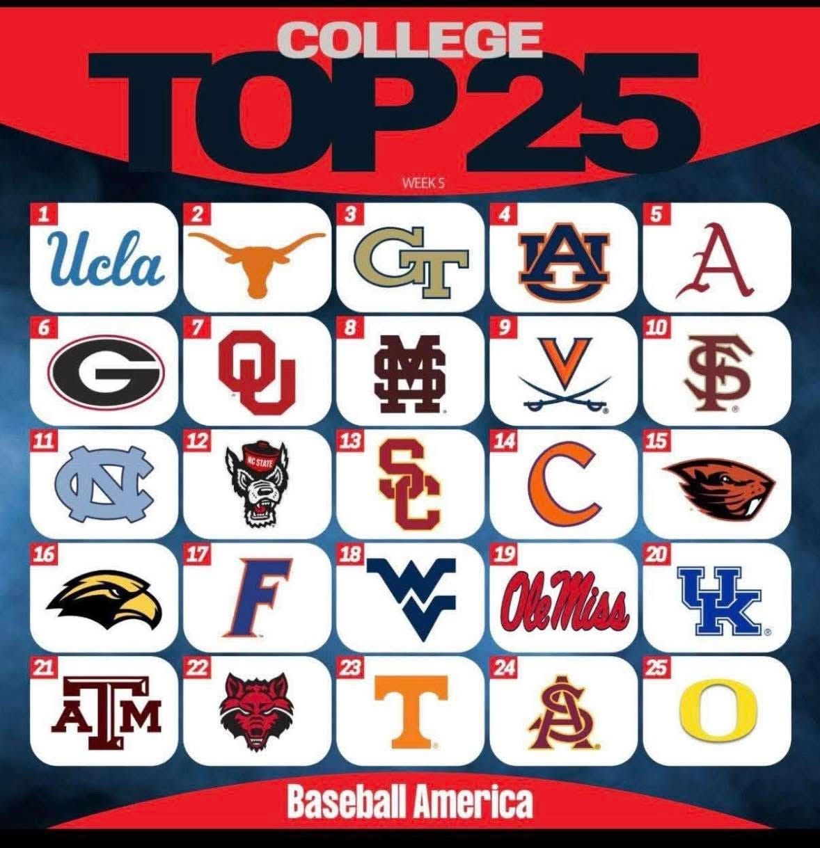 The ranking is the program’s first appearance in Baseball America’s Top 25 and its first national recognition in a major poll since 2019, when the Red Wolves were ranked No. 29 in Collegiate Baseball’s Top 30. The highest ranking in program history came in 1970, when Arkansas State finished No. 24 in Collegiate Baseball’s final poll.