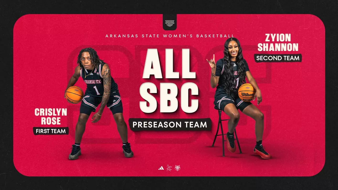Arkansas State women’s basketball was picked to finish second in the Sun Belt Conference in the 2025-26 Preseason Coaches Poll with two Red Wolves named in the preseason honors, the league announced Monday.