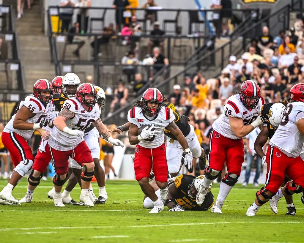 A-State (1-3) put together 318 yards of total offense, highlighted by 226 passing yards from quarterback Jaylen Raynor, who threw for two touchdowns and added another score on the ground. Kennesaw State (2-2) countered with a balanced attack, piling up 497 total yards – 308 through the air and 189 on the ground.